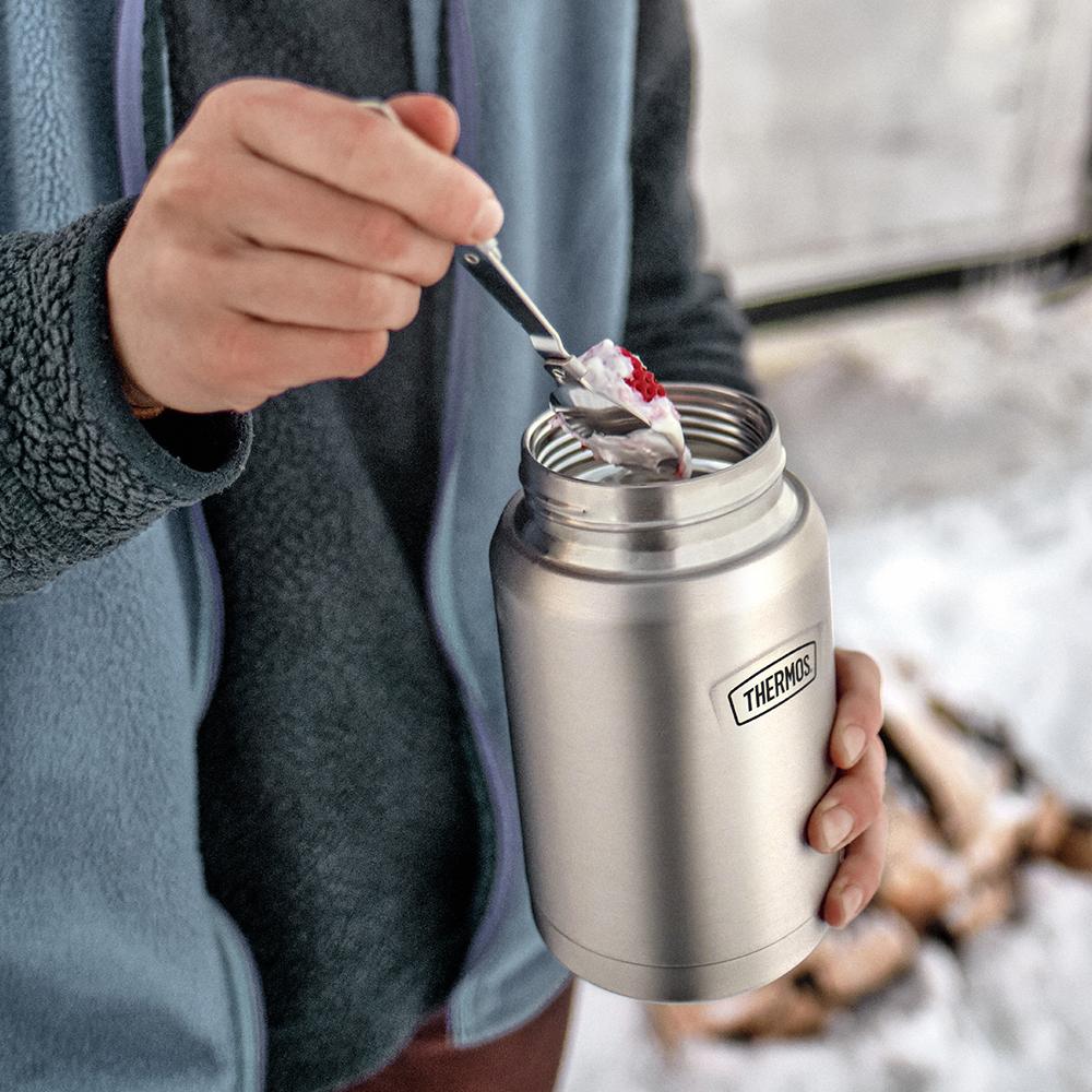 The 24oz Stainless Steel Food Jar from the Icon? Series by Thermos is one of our latest masterpieces. With Thermos? vacuum insulation technology. a Dura-Guard? pressure relief stopper with enhanced insulation. a Griptec? non-slip base. and a Stow-Away? stainless-steel spoon. this 24oz. food jar is exactly what you need to handle whatever your day has in store. When you need your food fresh. good enough doesn’t cut it. Introducing the Icon? Series by Thermos. Simple. timeless food and beverage containers. built to stand the test of time. Hot stays hot. Cold stays cold. Food stays fresh. Easy to clean. easy to use and easy to love.